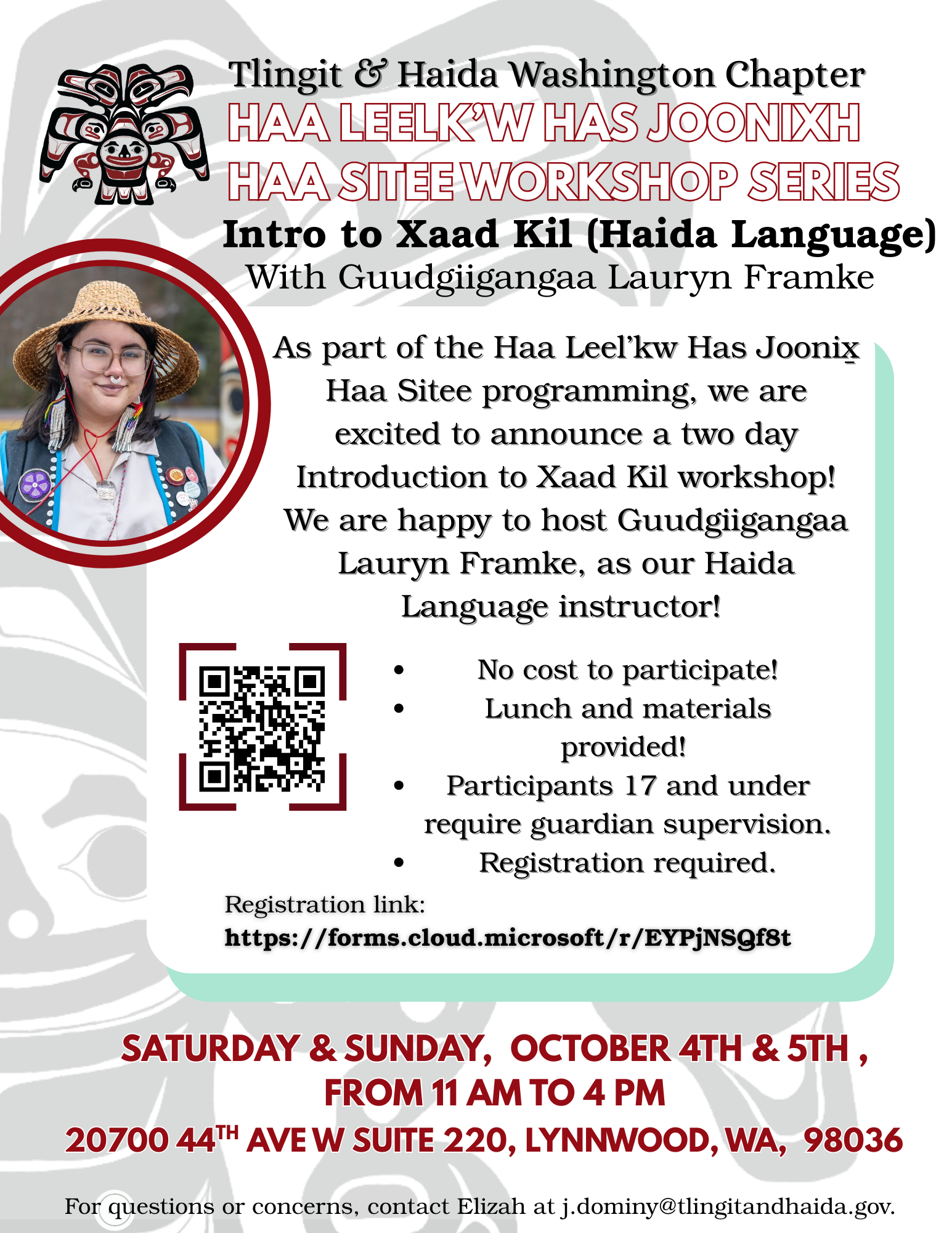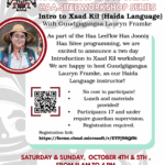 We are happy to announce the second workshop included in our Haa Leel’kw Has Joonixh Haa Sitee program series! Joining us from Alaska, we are honored to host Guudgiigangaa, Lauryn Framke, as our Xaad Kil (Haida) language instructor! Through our Dreamstarter grantee, Elizah Dominy, we designed the Haa Leelk’w Has… Read More