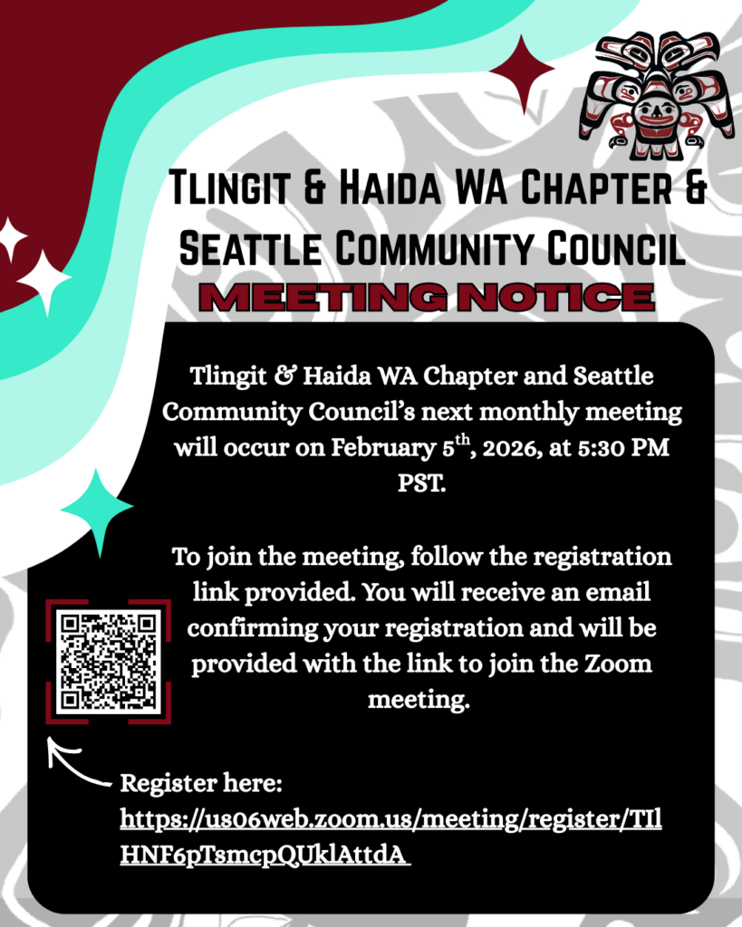 Tlingit & Haida WA Chapter (nonprofit) and T&H Seattle Community Council Meeting Notice – 02/05/26